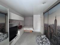 В 1 комнате двухспальная кровать и большой шкаф. 2 комната, проходная, пустая (на фото там стоит диван, ни его, ни телевизора нет). В третьей комнате, 2 односпальных кровати и рабочий стол. Есть застекленный балкон. На полу ламинат. Тихие, дружелюбные соседи.