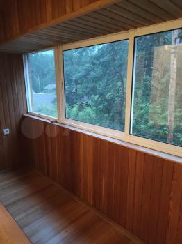 Везде дорогая мебель, большой угловой кожаный диван (натуральная кожа, Италия), простой диван-книжка. Большой застеклённый балкон с видом на сосновый бор.