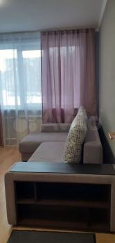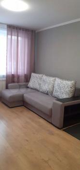 В квартире выполнен косметический ремонт. Просторная комната с мягким диваном и вместительным шкафом создаёт комфортное пространство для отдыха. Кухня оборудована необходимой техникой, включая холодильник и плиту.