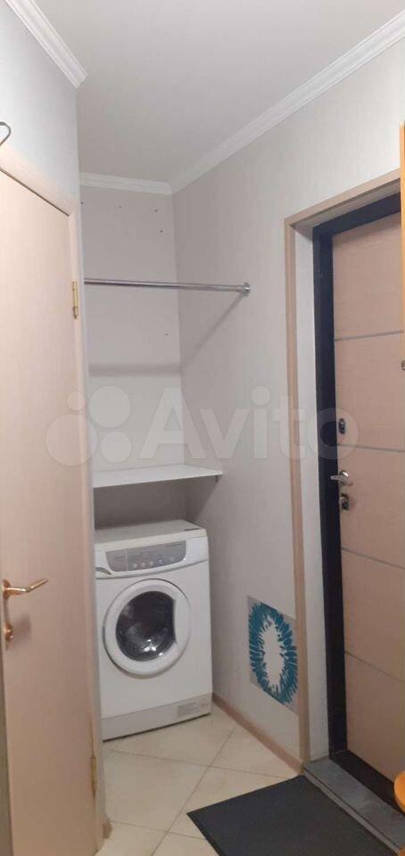 В квартире выполнен косметический ремонт. Просторная жилая комната оснащена кондиционером и вместительным шкафом. Из мебели — удобный диван и телевизор. Кухня площадью 7 м² оборудована необходимой техникой, включая холодильник и стиральную машину.