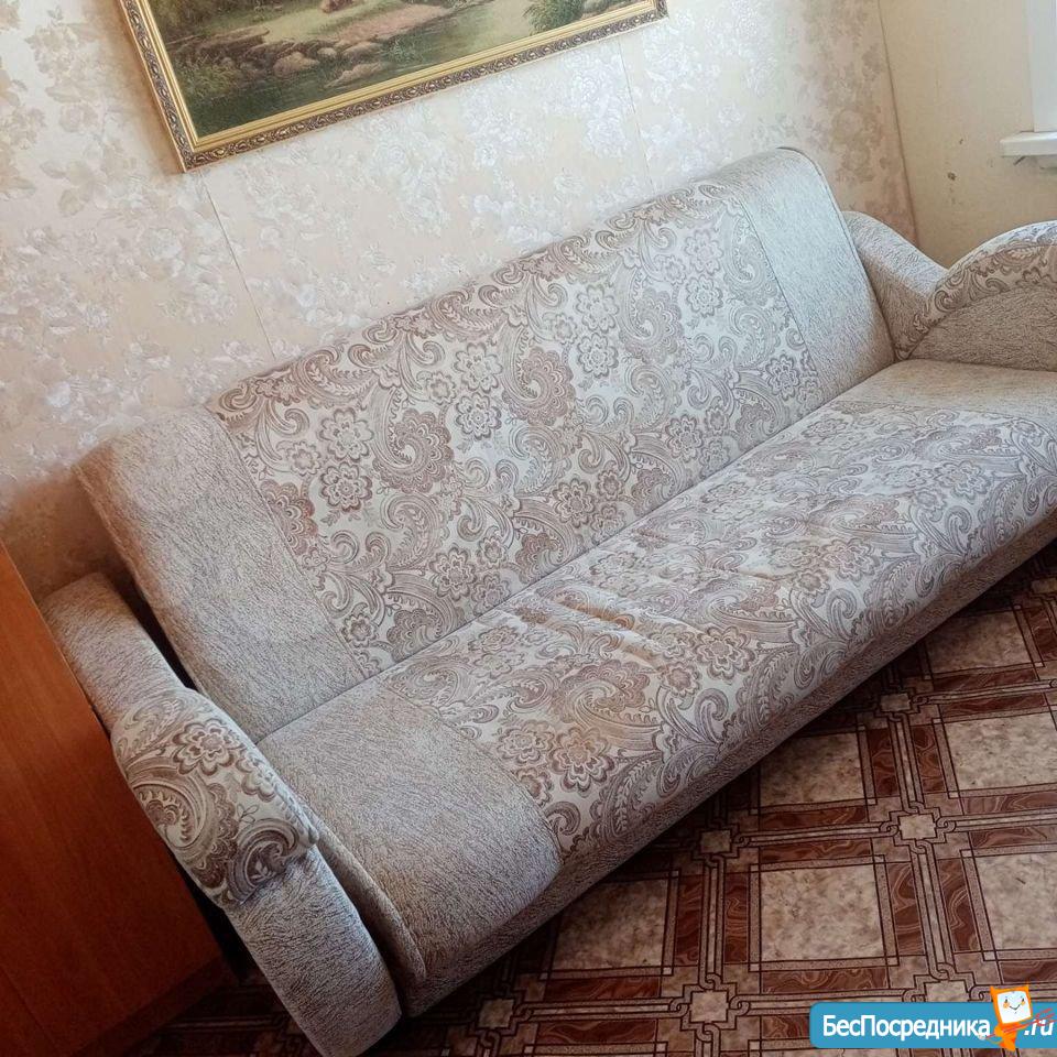 В комнате есть диван , Кухня, стенка .