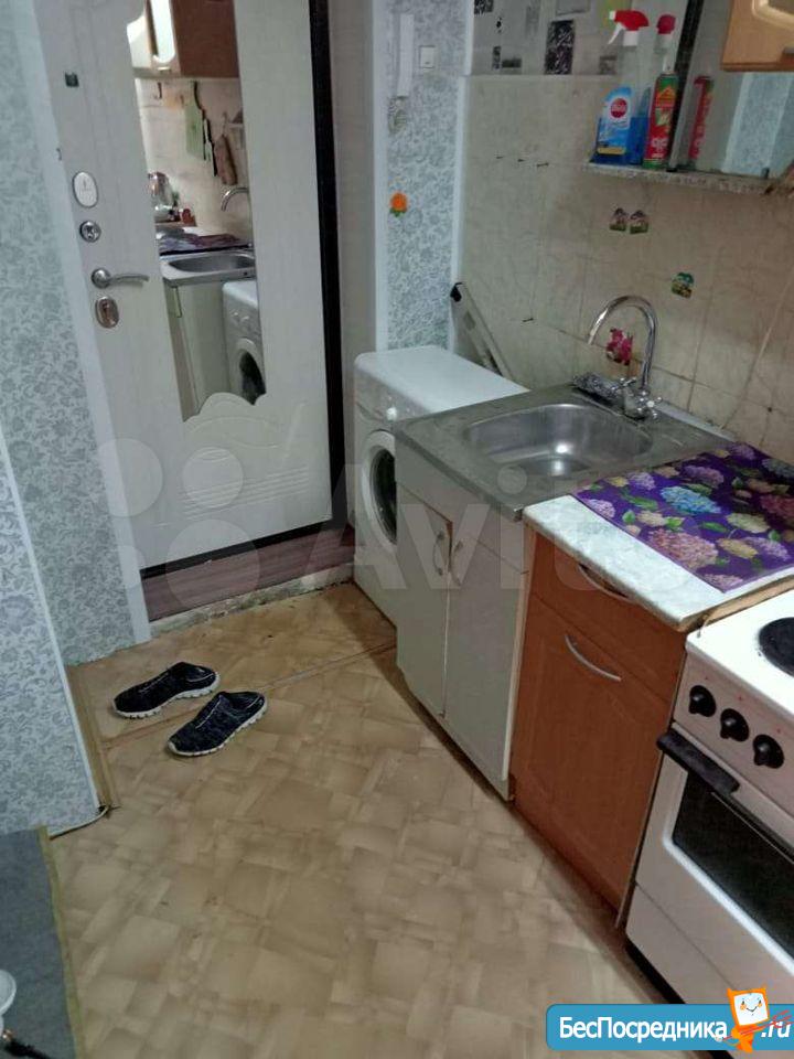 В комнате перегородка на спальную и кухонную зону, окно пластиковое. Секция чистая, соседи семейные.