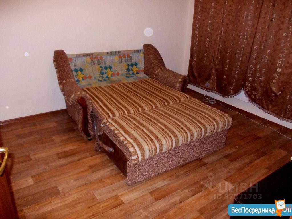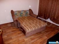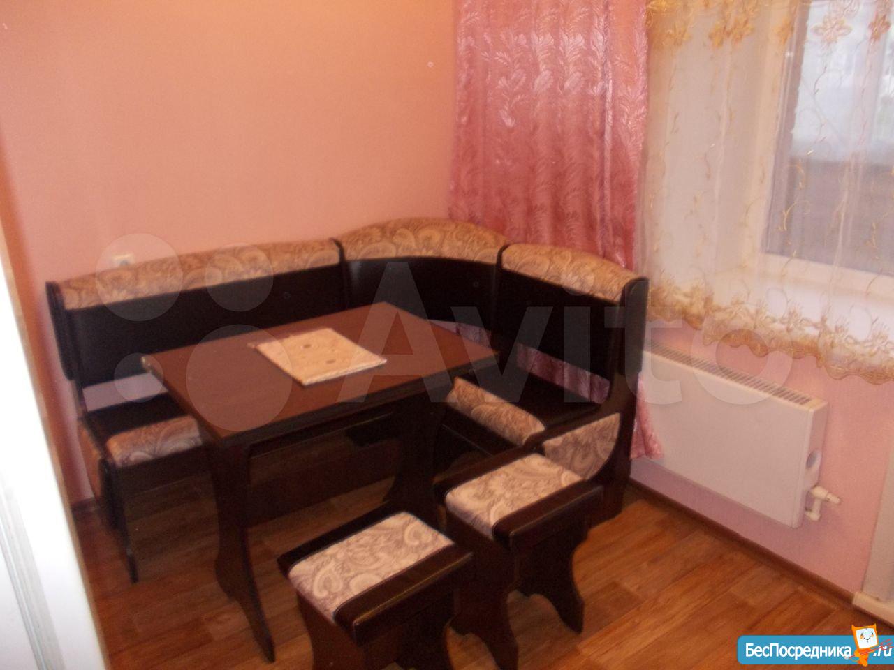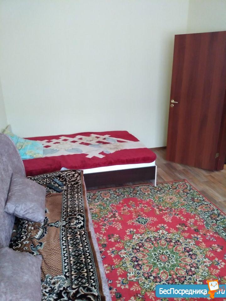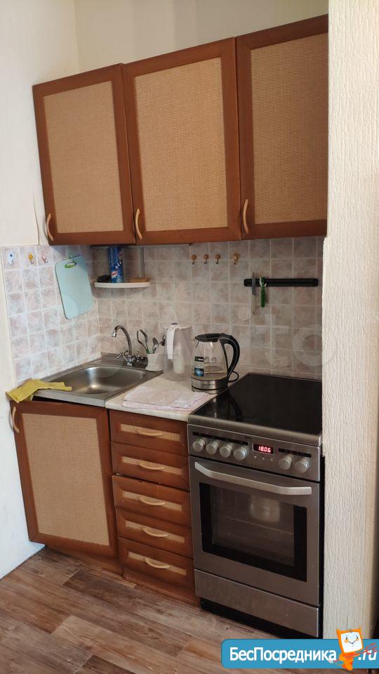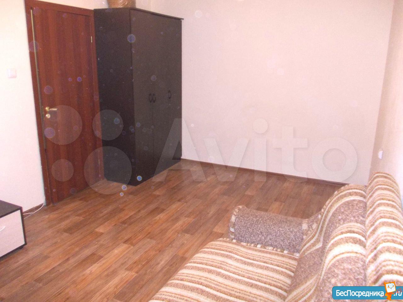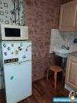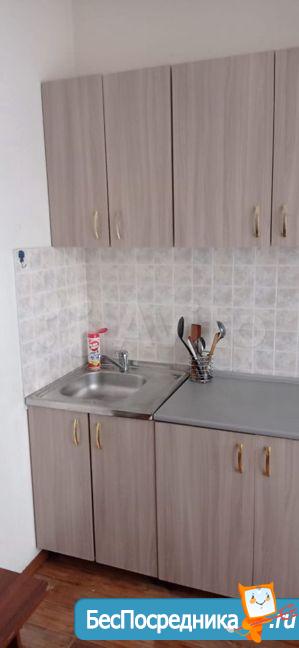 1 комнатная квартира.имеется кухонный гарнитур с плитой. В комнате диван и кровать. Недостаток отсутствие холодильника и стиральной машины.