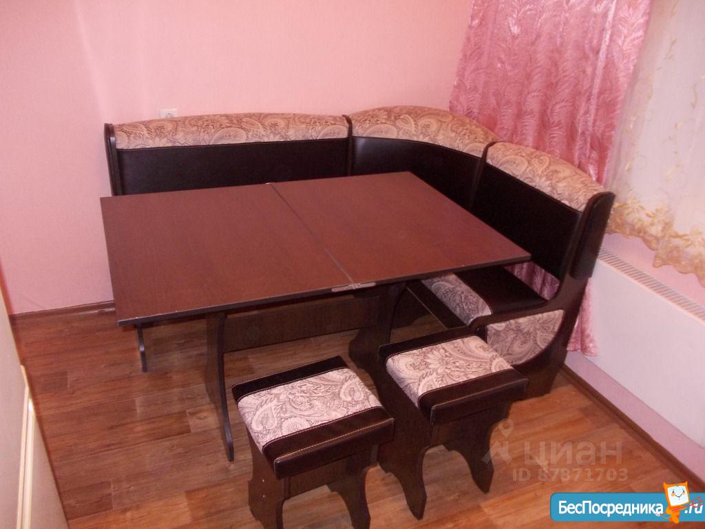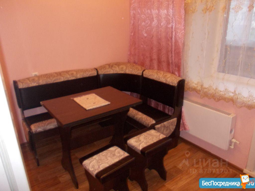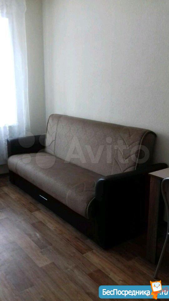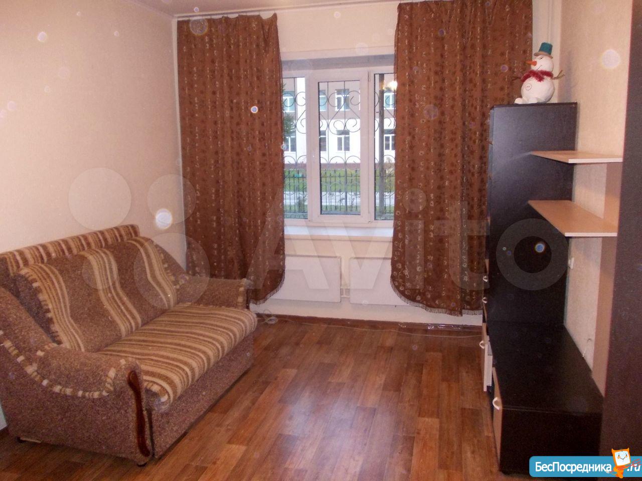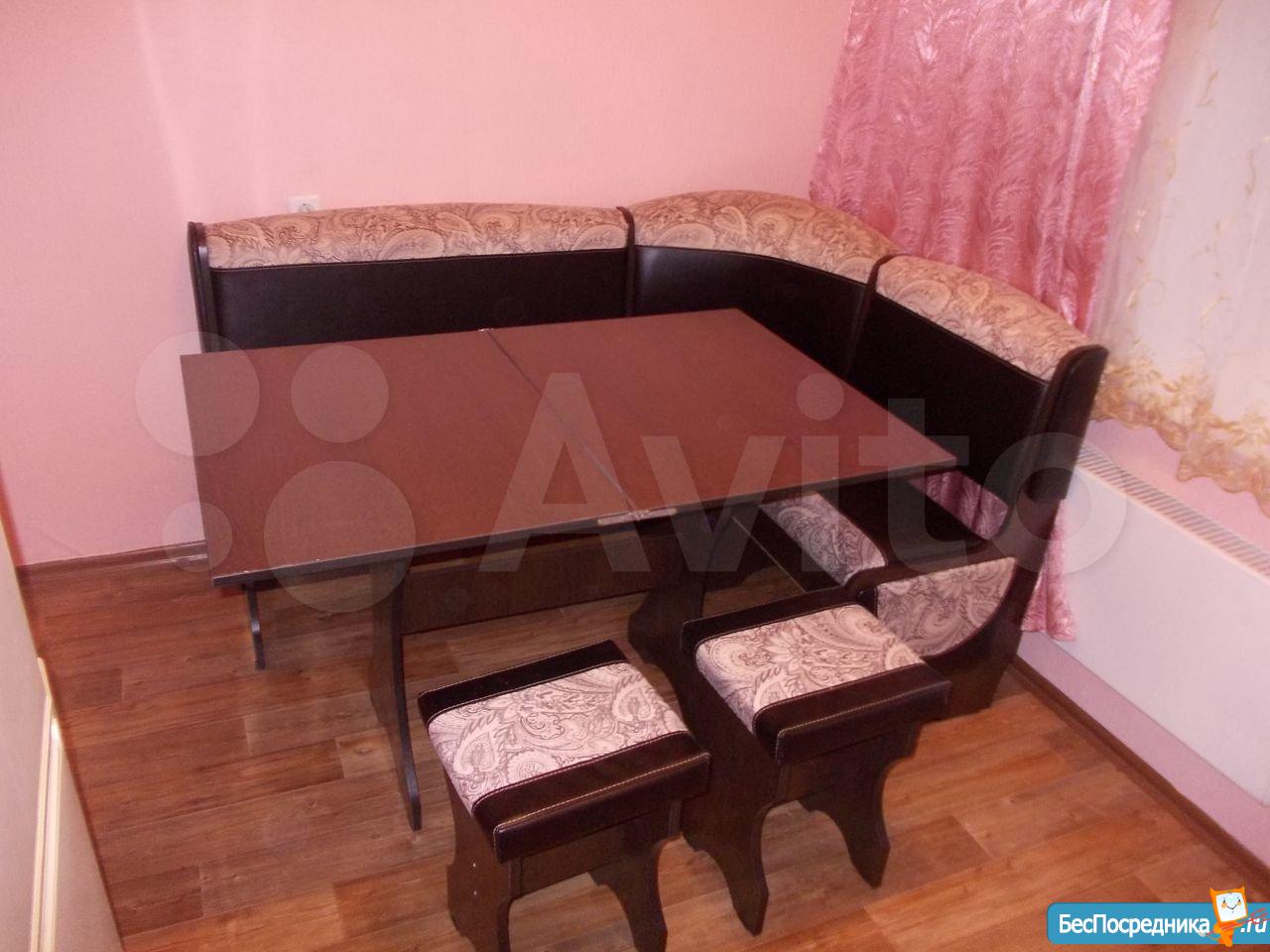 1 комнатная квартира.имеется кухонный гарнитур с плитой. В комнате диван и кровать. Недостаток отсутствие холодильника и стиральной машины.