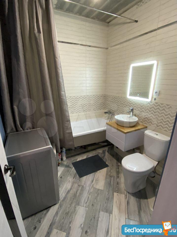 Частично с мебелью: кровать, чайник, плита, микроволновка, холодильник, стиральная машинка, шкаф на балконе для хранения сезонной одежды.