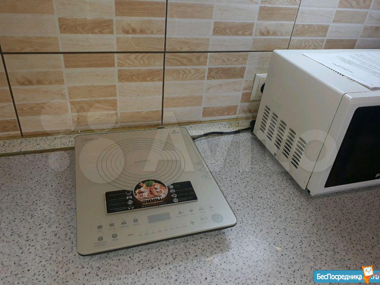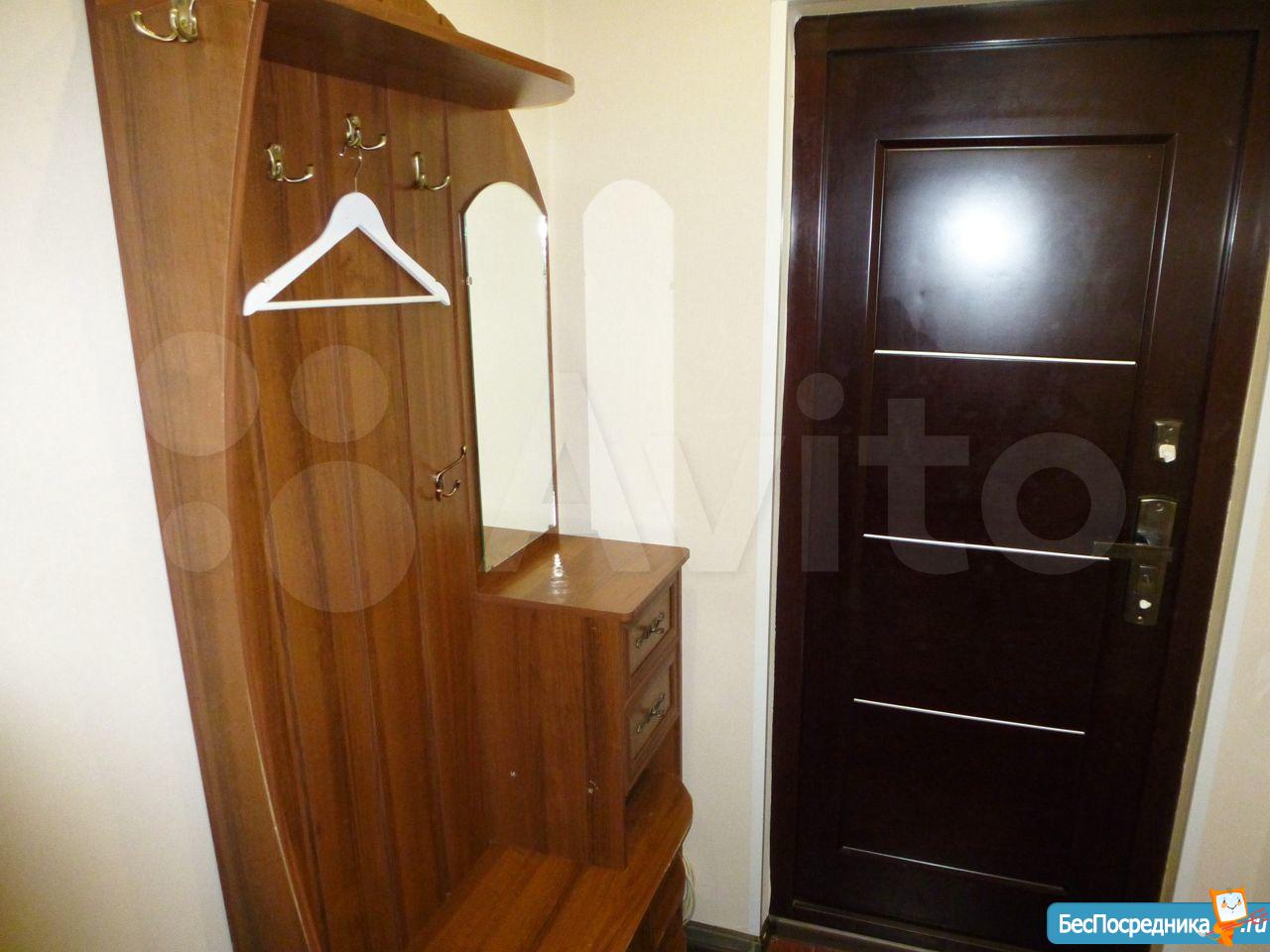 В квартире имеется все для комфортного проживания: диван, шкаф, комод, холодильник, плитка, стиральная машинка, стол, 2 стула, сушилка для белья, подушка, одеяло, плед.