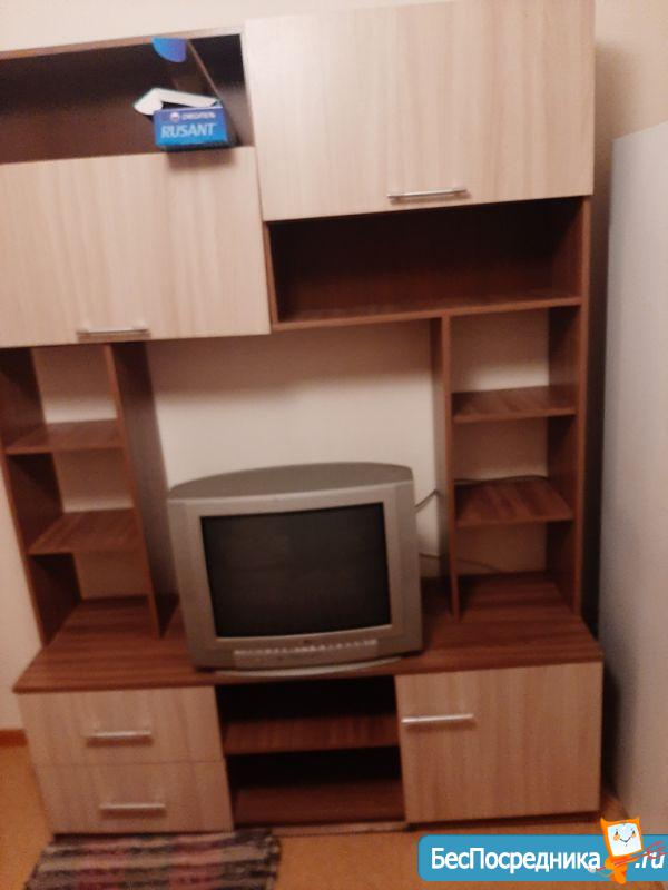 есть диван, шкафы, стол, холодильник, электропечь, стиральная машина, ремонт хороший