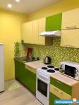 Из техники: стиралка, печь, микроволновка, холодильник, гладильная доска, wifi-роутер. Мебель вся, как на фото.