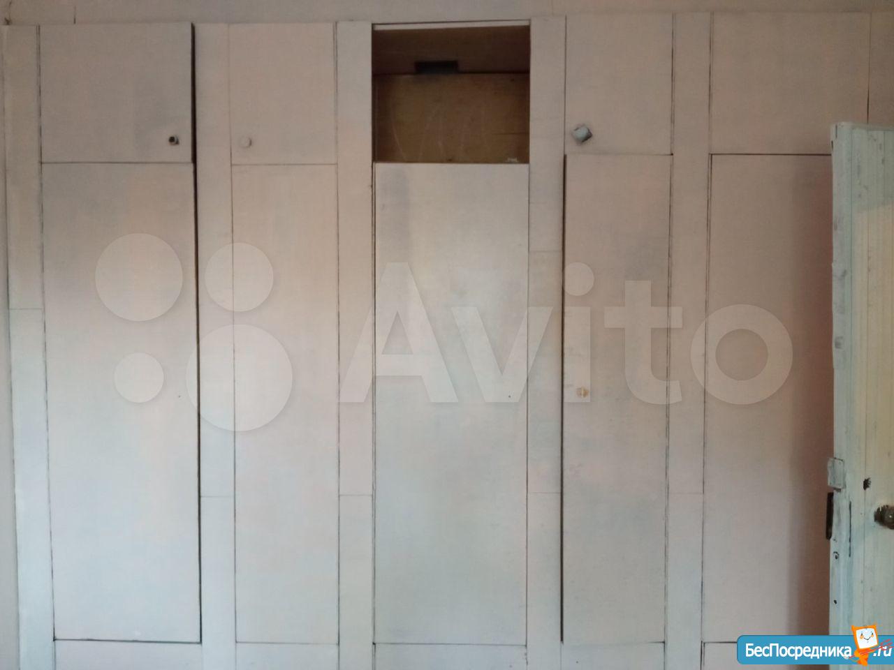 Сделан косметический ремонт, есть холодильник, встроенный шкаф, стол. Комната очень теплая. Окно деревянное.