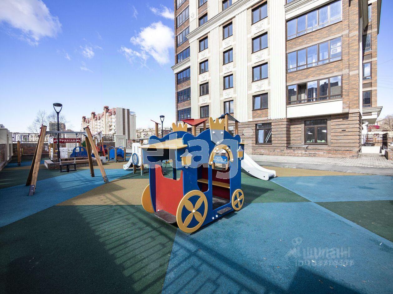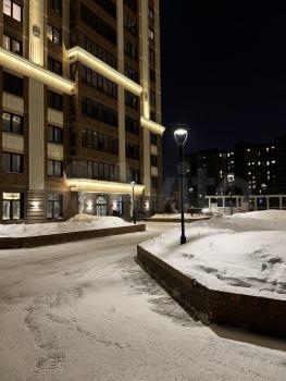 Дом и подъезд находится под круглосуточным видеонаблюдением и охраной. Придомовая территория ограждена, на ней имеется большая детская площадка и фонтан.