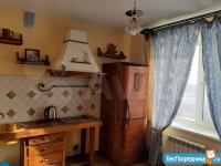 Мебель - кухонный гарнитур, стол, стулья, холодильник, микроволновая печь, стиральная машина, горка, диван в комнате.