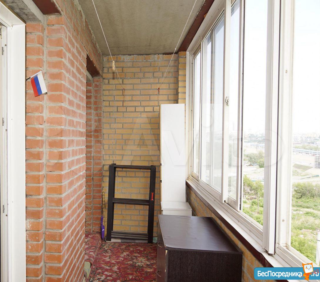 Большая закрытая лоджия с выходом в обе комнаты.