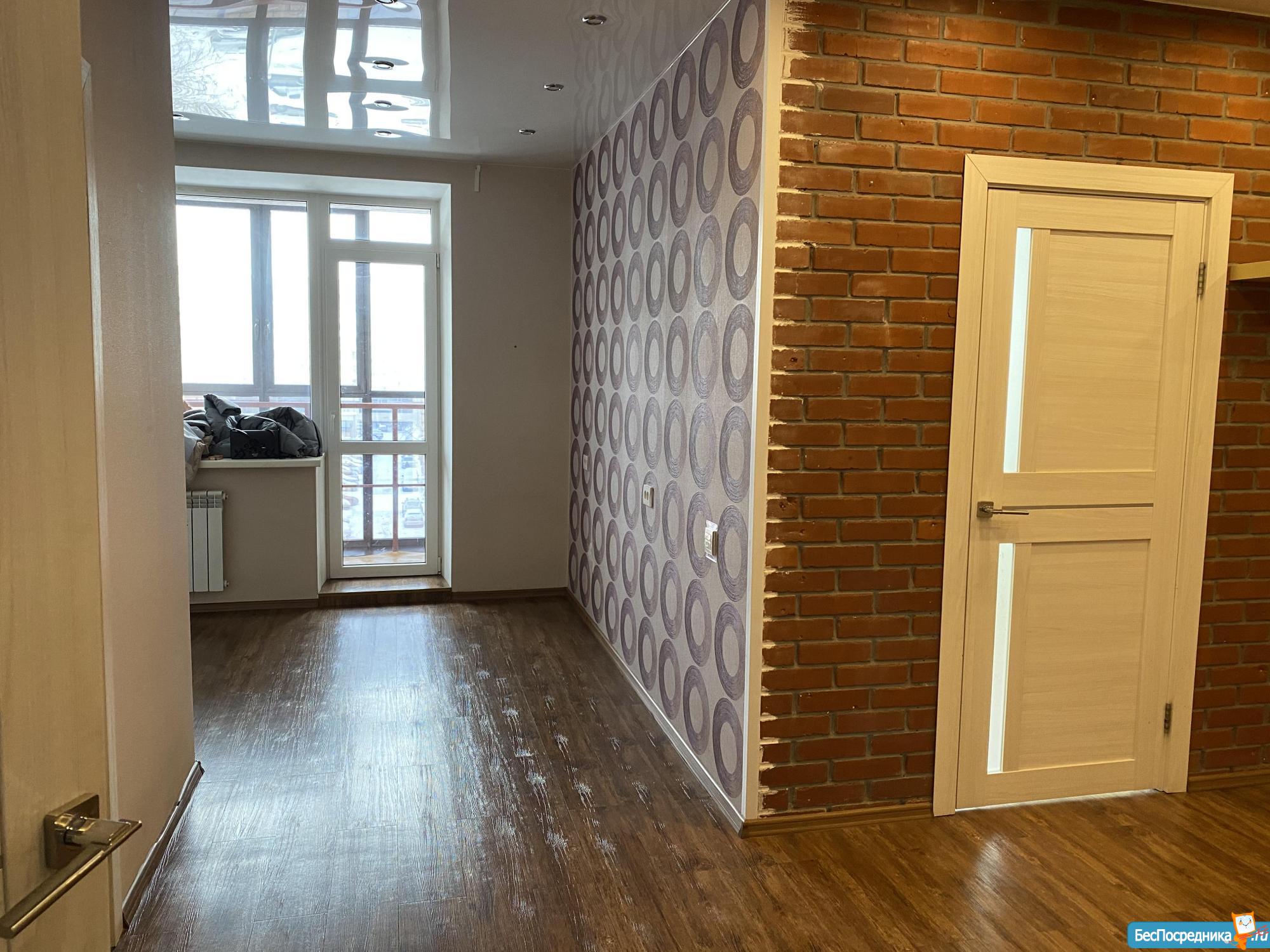На фото квартира представлена без мебели ( в квартире будет кровать, обеденный стол и стулья, холодильник, стиральная машинка и телевизор).