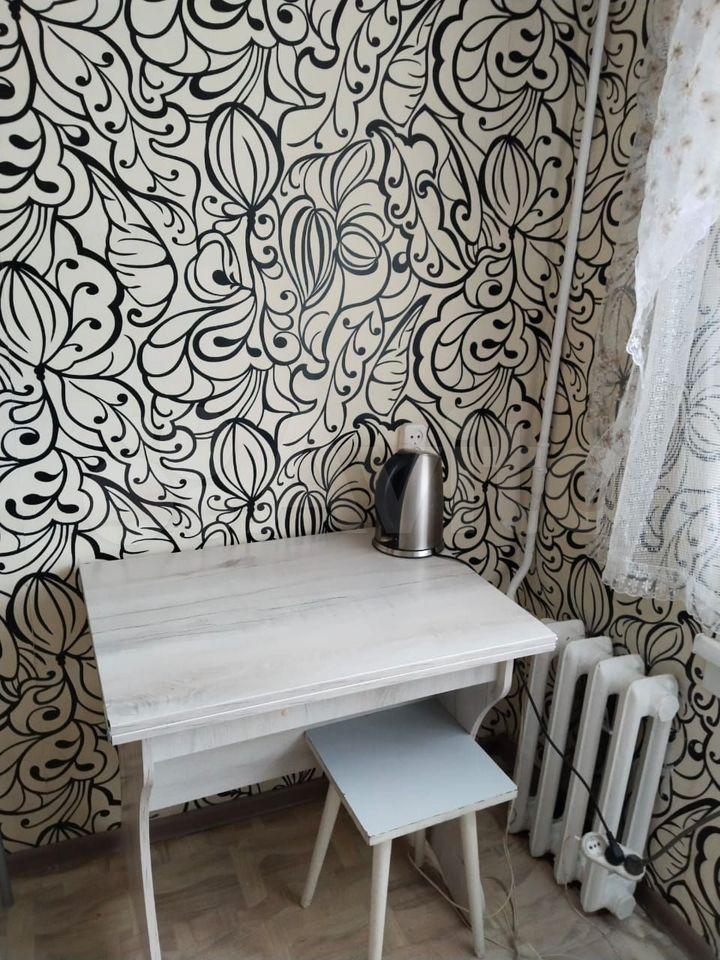 Сдаётся угловая квартира на четвертом этаже на длительный срок. Окно выходит во двор на детскую площадку. Второе окно выходит на дорогу соседней улицы. Кухня отделена от коридора дверью. В этом доме находится ЖЭУ. Интернет и телевизор работают от компании "Ростелеком".