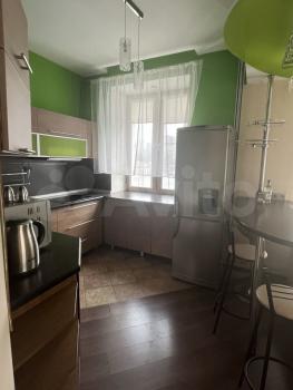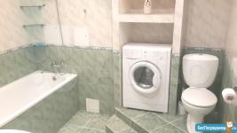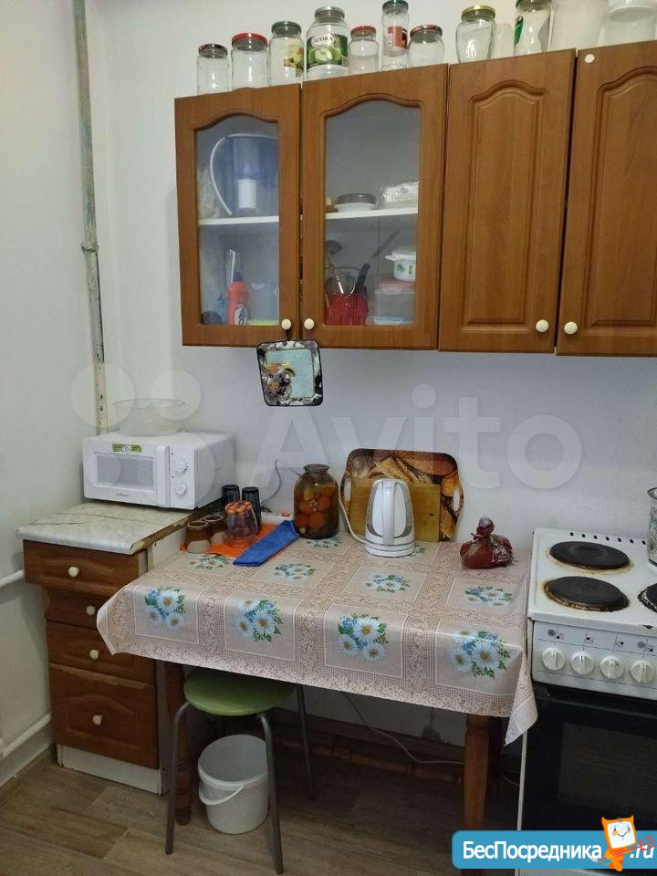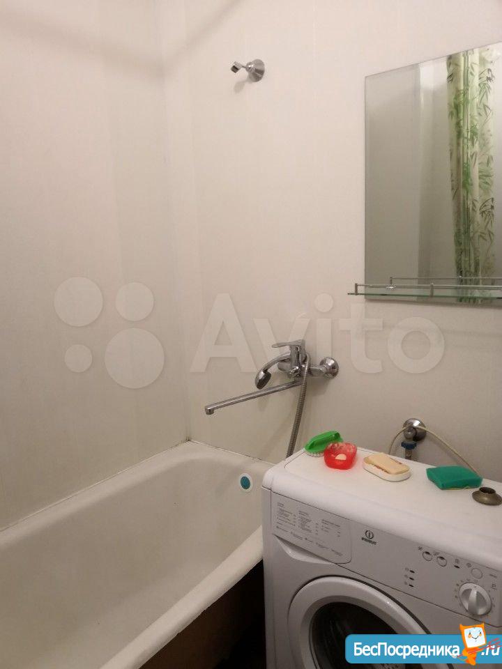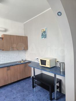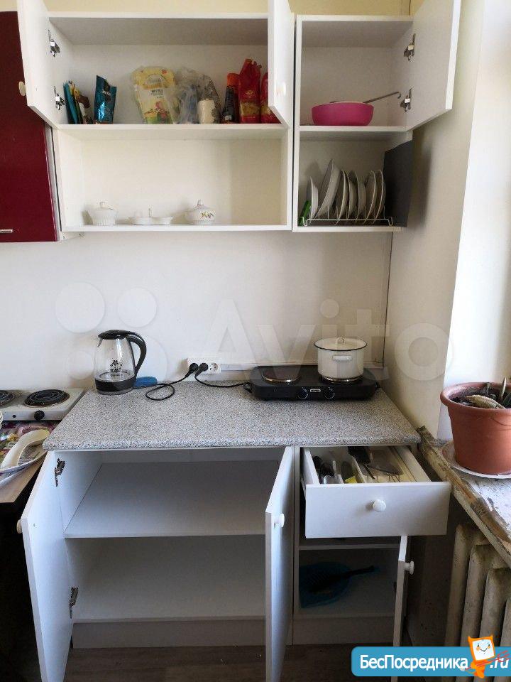 На кухне есть выделенное место, плита и новый холодильник с морозильной камерой No frost. Есть фронтальная стиральная машинка. Соседи - 1 комната пустует, во 2-й бабушка живет (лояльная). Фото не выкладываю, т. к. в январе все равно будет ремонт.