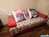 В комнате сделан ремонт, мебель Икея (новый розовый диван и детский диван (раскладывается до 1,8 м.) , шкаф для одежды, шкаф для книг, полки), компьютерный стол, журнальный столик), телевизор.