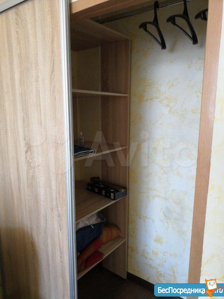 В комнате сделан ремонт, декоративная штукатурка, ламинат. Мебель вся новая: 2 дивана, встроенный шкаф для одежды, стол раскладывается, 2 стула. Дополнительно куплена стойка для одежды с полками. Телевизор.