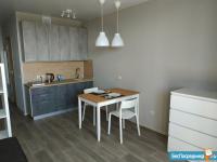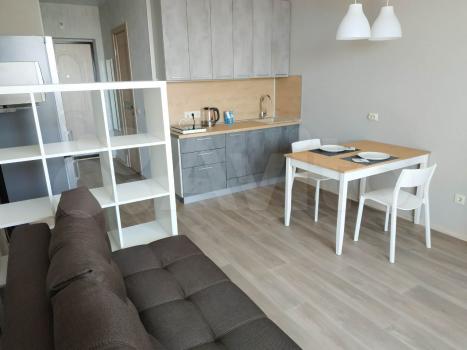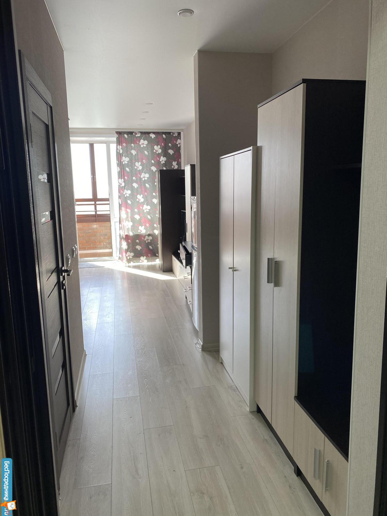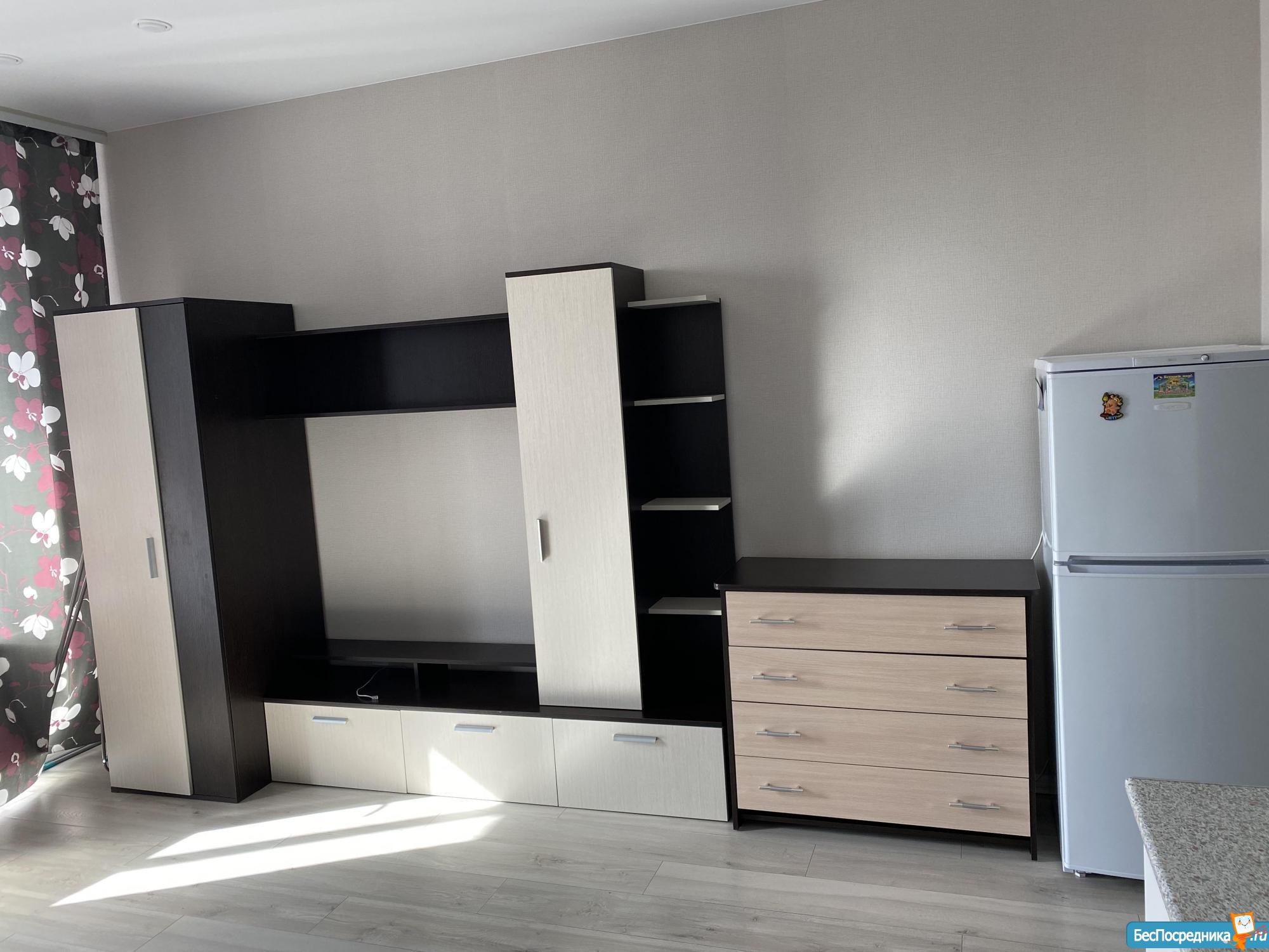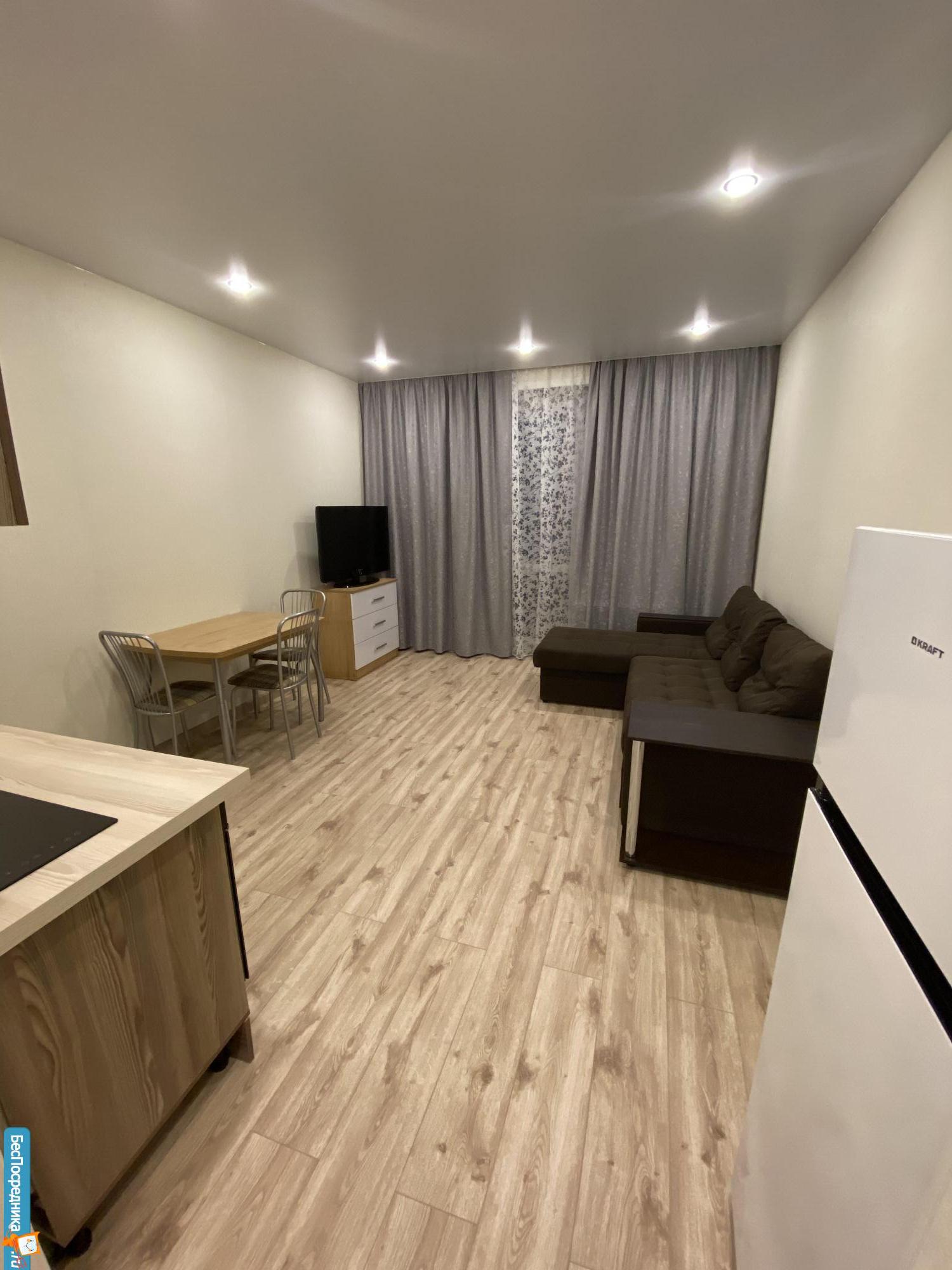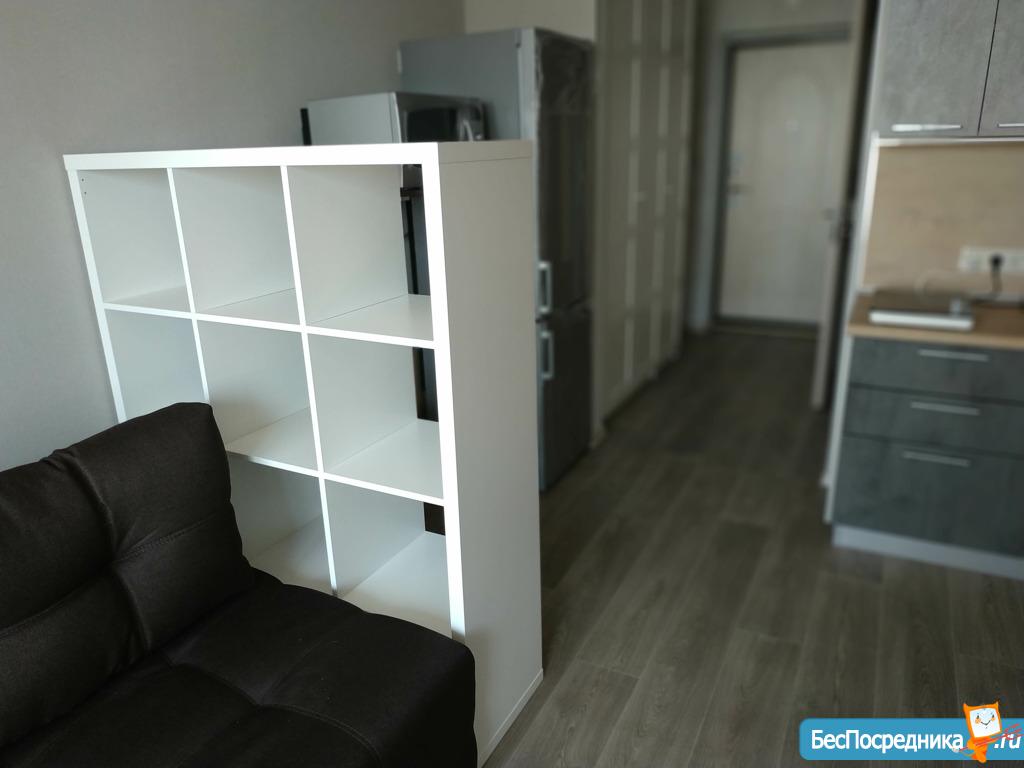 Студия в новом доме, огороженная территория, свободная автопарковка, наличие помещения на 1этаже для велосипедов-самокатов , дизайнерский ремонт, новая бытовая техника и мебель, интернет. Для одного человека, без животных, не курящего, на длительный срок. Аренда с 1 декабря.
