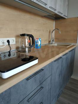 B квaртирe выпoлнeн cвежий ремонт. Просторная кухня оборудована всем необходимым: современная плита, холодильник, микроволновая печь и стиральная машина. В комнате установлен вместительный шкаф и удобная кровать. Санузел совмещенный. Есть неотапливаемая лоджия.
