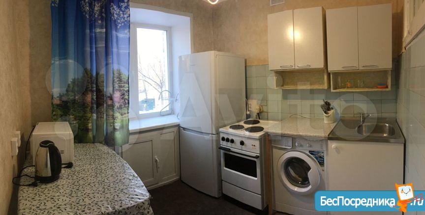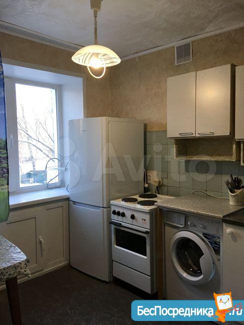 В квартире есть все необходимое для жизни: холодильник, электроплита, стиральная машина, раскладной диван.
