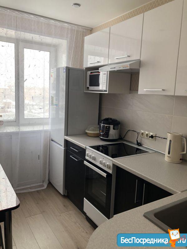 Квартира полностью меблирована: раскладной диван, большая двуспальная кровать, обеденный стол, кухонный уголок, большой шкаф купе, телевизор, стиральная машина, плита, микроволновка, духовка, чайник, посуда. Заезжай и живи.