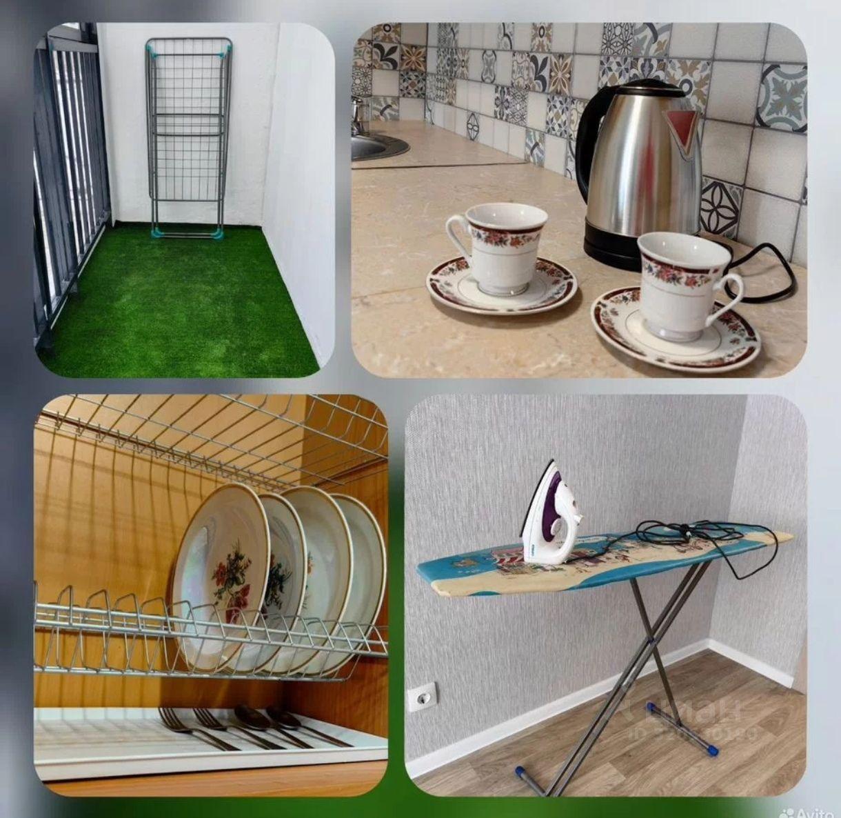 В кухне-гостиной полноценное спальное место: диван-кровать 130*195 см. Очень вместительная угловая кухня. Есть чайник, утюг, посуда, гладильная доска, сушилка.
