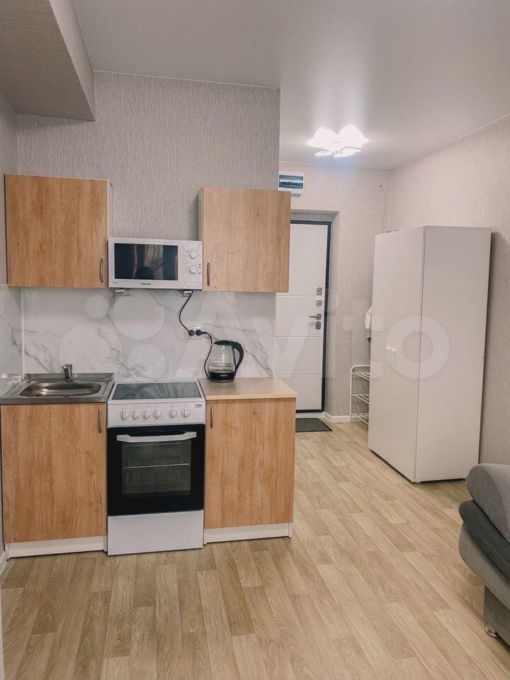 Аренда квартиры-студии в новом доме. Лоджия застеклена, красивый панорамный вид. В шаговой доступности остановка общественного транспорта, большой выбор магазинов, школа, детские сады, аптеки и др.