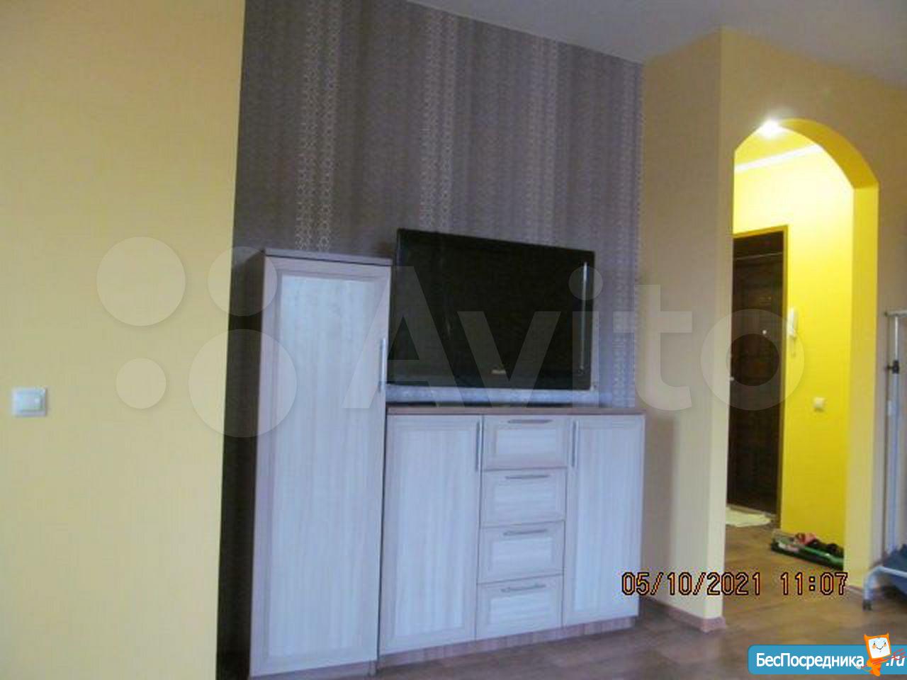 Сдам просторную студию в отличном состоянии. Холодильник, стиральная машина, плита, мебель в наличии. Оплата 13000р. плюс коммунальные.