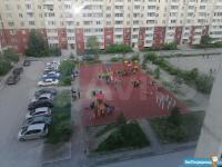 Окна выходят во двор на детскую площадку.