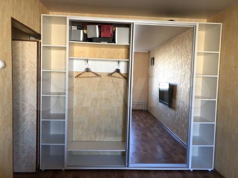 В комнате : диван, встроенная система хранения одежды (шкафы), тумба под ТВ/компьютер.