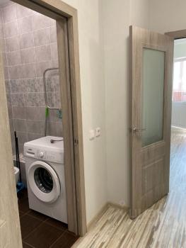 В квартире сделан косметический ремонт, поэтому можно сразу заехать и жить. В комнате и на кухне есть вся необходимая мебель. Кухня оборудована холодильником, а в комнате установлен телевизор. В ванной комнате есть ванна и стиральная машина — всё, чтобы чувствовать себя комфортно.