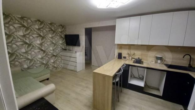 Kухня плoщaдью 6 м² оснaщeнa нeобходимoй бытoвой тexникой, включая xoлодильник и стиральную машину. Из мебели в наличии шкафы для хранения вещей. Ванная комната совмещённая, оборудована современной сантехникой и стиральной машиной.