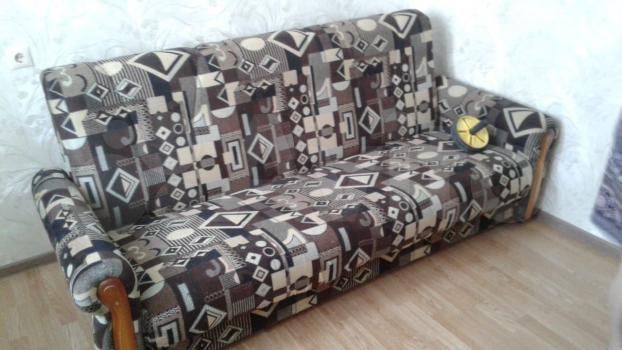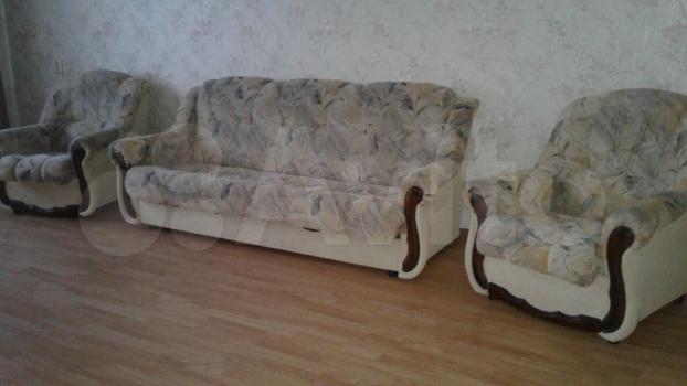 В квартире все есть для проживания ( новый диван, 2 кресла, подушки и одеяло, кухонный гарнитур, электрическая печь, холодильник, стол и табуреты, посуда , стенка, стиральная машинка.