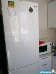 На кухне холодильник, микроволновка, печь электрическая индукционная с духовым шкафом, кухонный уголок со столиком.