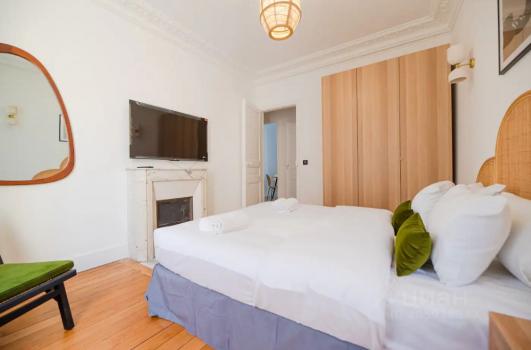 Гостиная с камином и телевизором. Она переходит в кухню. Есть две зоны для приема пищи. На кухне есть все, даже больше. Отличные две спальных комнаты, с телевизорами. На апартаменты два кондиционера. Два совмещенных санузла. Удобная развитая инфраструктура. Без животных.