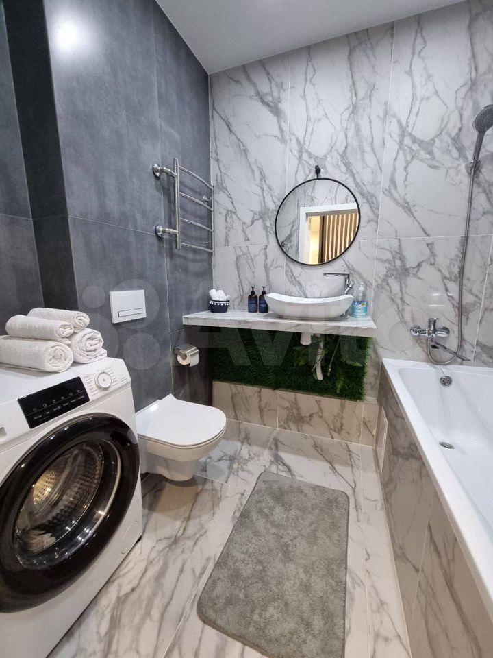 Квартира выполнена с дизайнерским ремонтом, с тщательно продуманной планировкой. В комнате и на кухне есть вся необходимая мебель. На кухне вы найдете современную технику: холодильник, посудомоечную машину и стиральную машину. В комнате установлен кондиционер и телевизор, обеспечивая комфорт в любое время года. Санузел совмещённый и оборудован душевой кабиной, что удобно для быстрого начала дня.