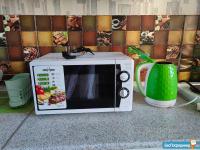 Есть все необходимое: холодильник, плита, духовка, вытяжка, микроволновка, чайник, стиральная машина, сушилка для белья, домофон