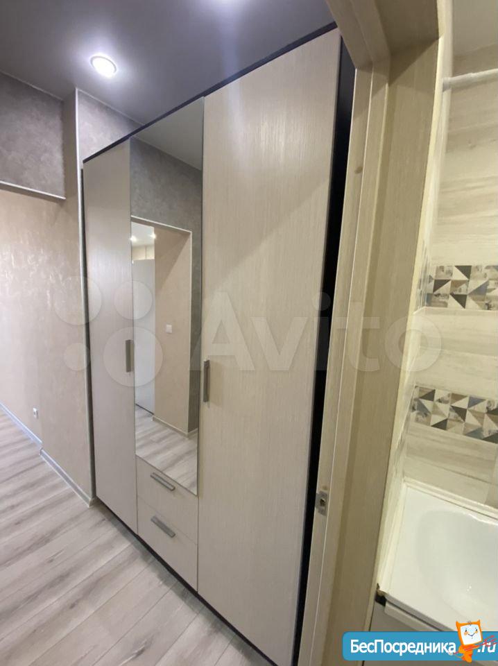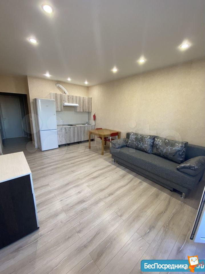 Сдам лично просторную студию на 8 этаже в новом доме. Дом сдан в 2017 году. Территория огорожена, видеонаблюдение, консьерж. Новый, очень качественный ремонт. Мебель: кухонный гарнитур, стол кухонный, стол журнальный, диван, встроенный шкаф. Электроприборы: холодильник, электроплита, стиральная машина. Балкон застеклен. Собственник.