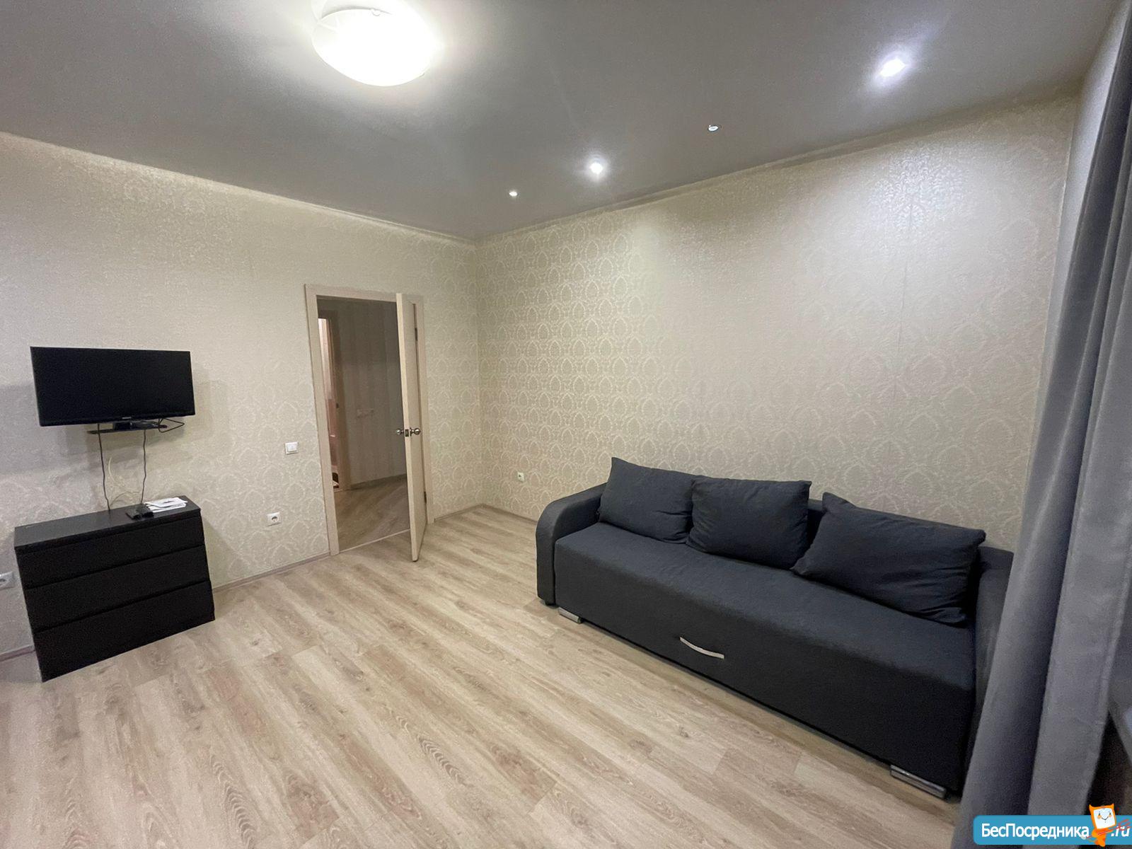 Сдам 1-ю квартиру, ремонт современный, имеется вся необходимая мебель и техника (стиральная машина, холодильник, плита, микроволновая печь, чайник, телевизор, пылесос, утюг).