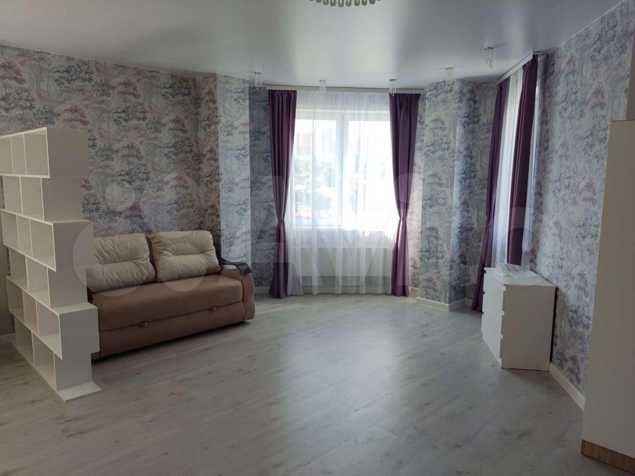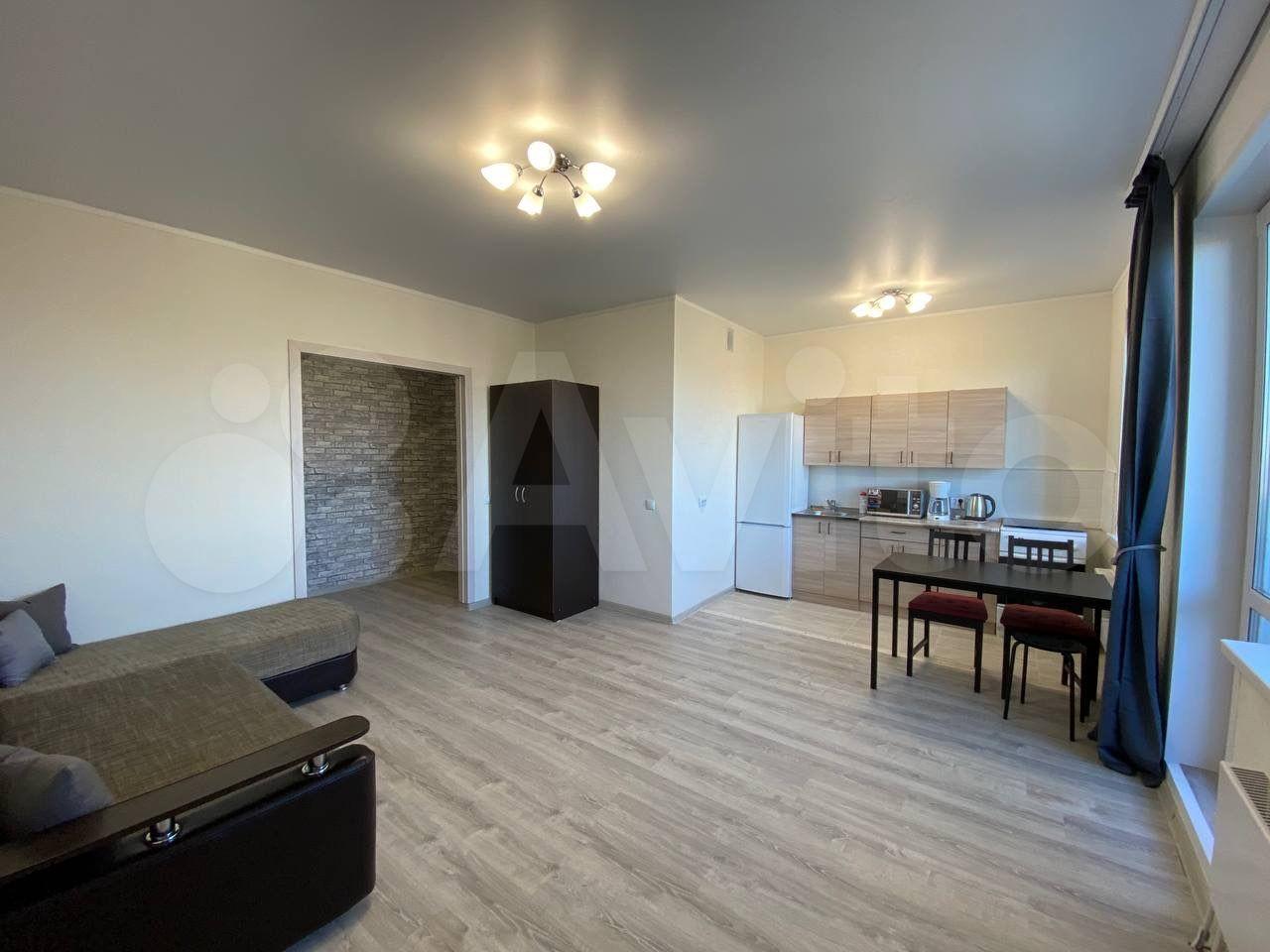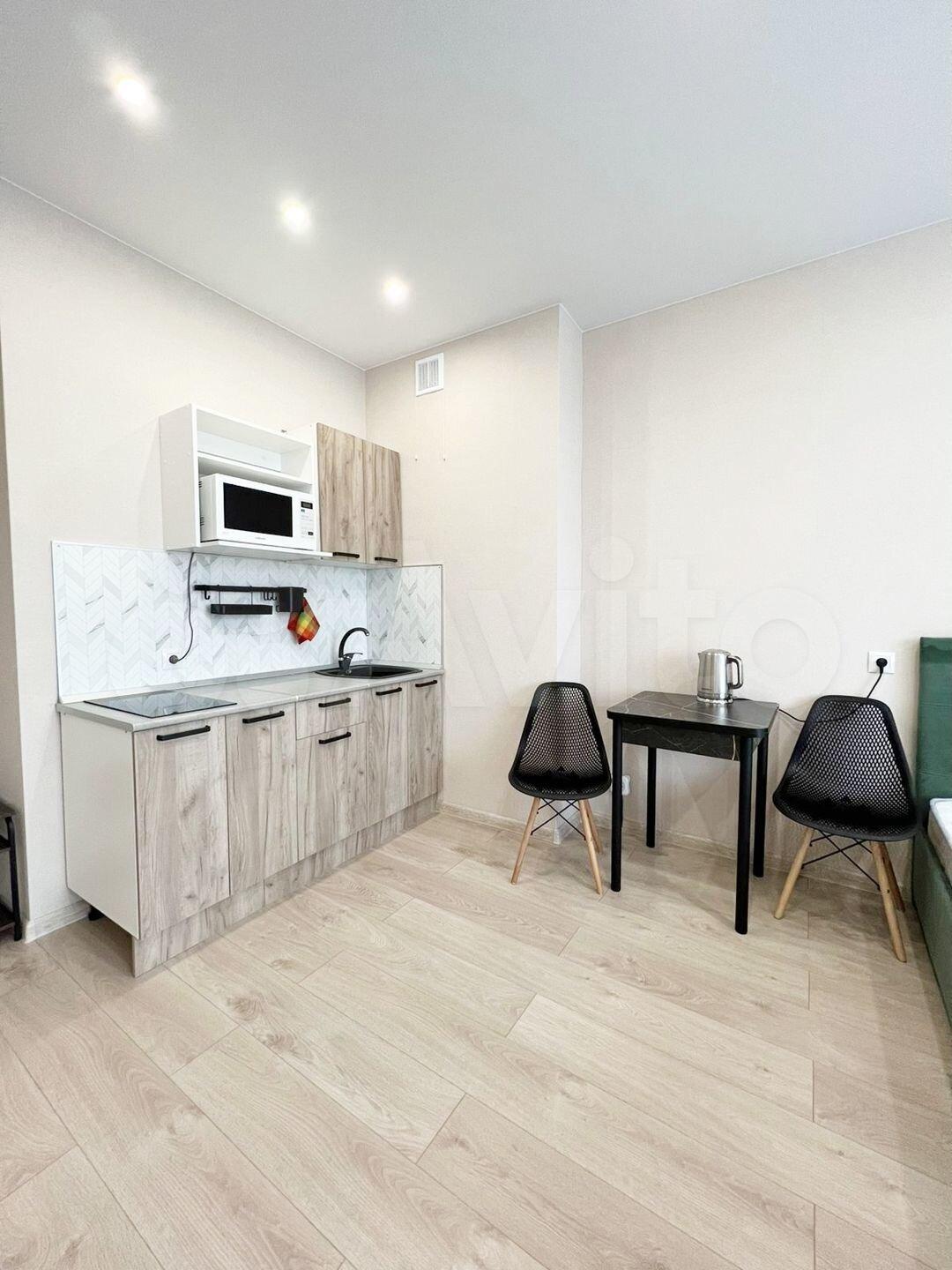 2-х комнатная студия. Установлен кухонный гарнитур, диван, стиральная машина , холодильник. Без животных. В квартире курить запрещено.