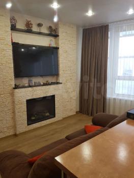-Зал: большой плоский телевизор на подставке, электрокамин, экран для проектора (проектора нет, можете установить свой-крепёж имеется и смотреть дома фильмы), стол и стулья, большой новый диван, кондиционер