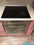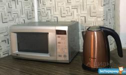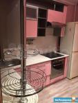 Частично с мебелью.Холодильник,плита,микроволновка,чайник.