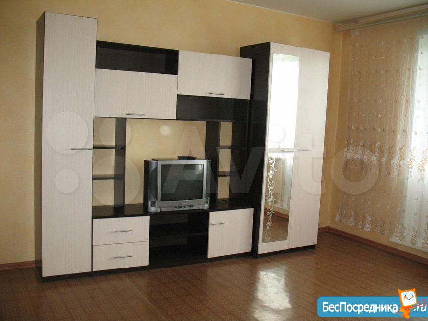 Комнаты изолированные. В одной комнате стенка, диван, кресло, телевизор. В другой комнате кровать шкаф, тумба-комод. На кухне гарнитур, стол, холодильник, плита.Стиральная машинка есть. Желательно семейной паре, русским. Оплата света и воды по счетчикам.