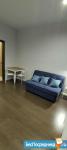 В студии есть:диван, стол, кондиционер, стиральная машина, мультиварка.