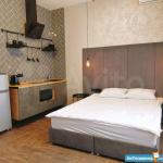 Апартаменты укомплектованны всей необходимой бытовой техникой, посудой. Удобная кровать с ортопедическими матрасами. В с/у душевая, зеркало с подсветкой и т.д.