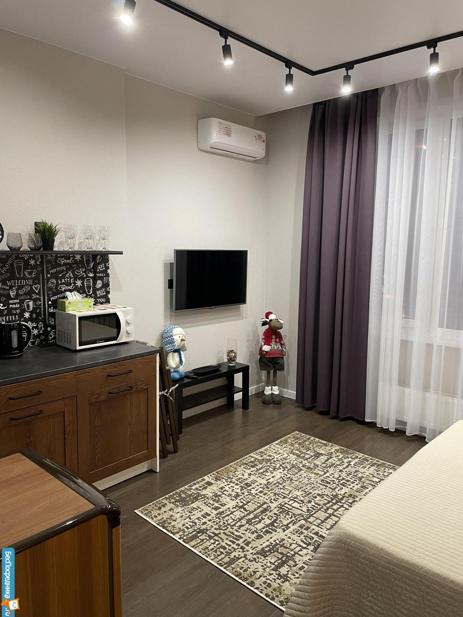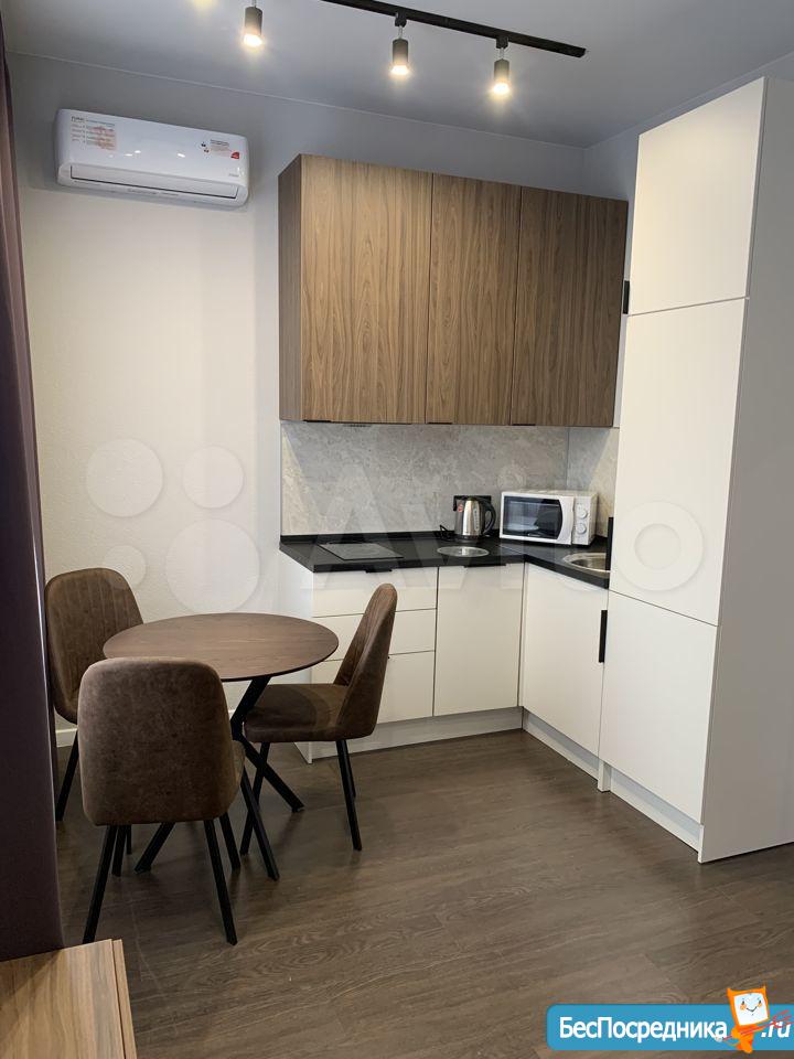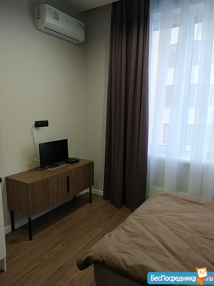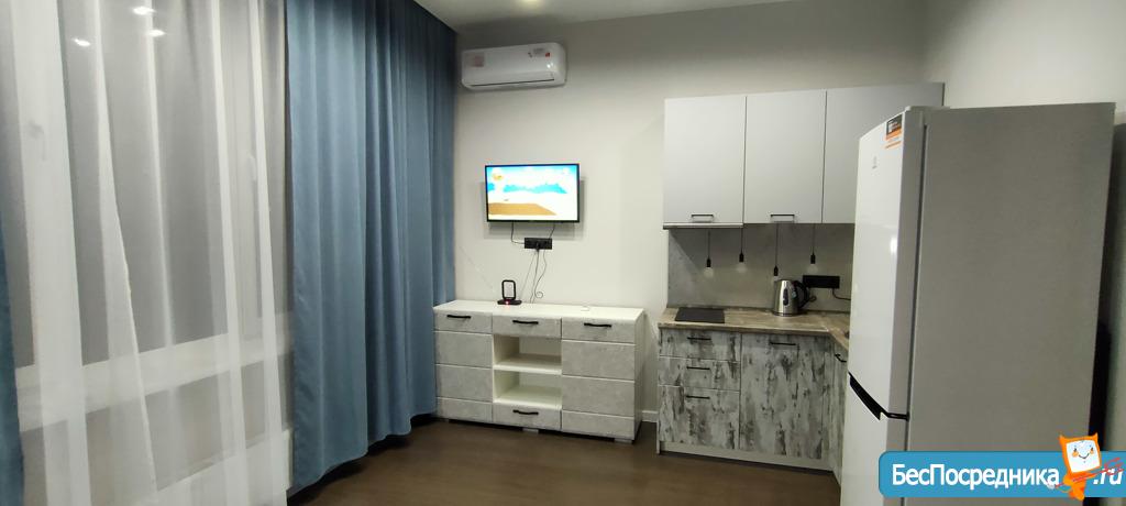 Сдам студию с евроремонтом в новом апарт-отеле. Есть вся бытовая техника для комфортного проживания, кондиционер.