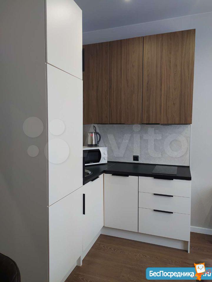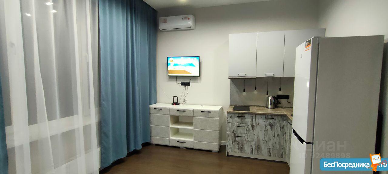 Есть всё необходимое! Холодильник варочная поверхность, вытяжка, стиральная машина, диван, телевизор и т.д.! В ЖК все максимально оптимизировано - есть кофейня, парковка, круглосуточная охрана и благоустроенная территория!