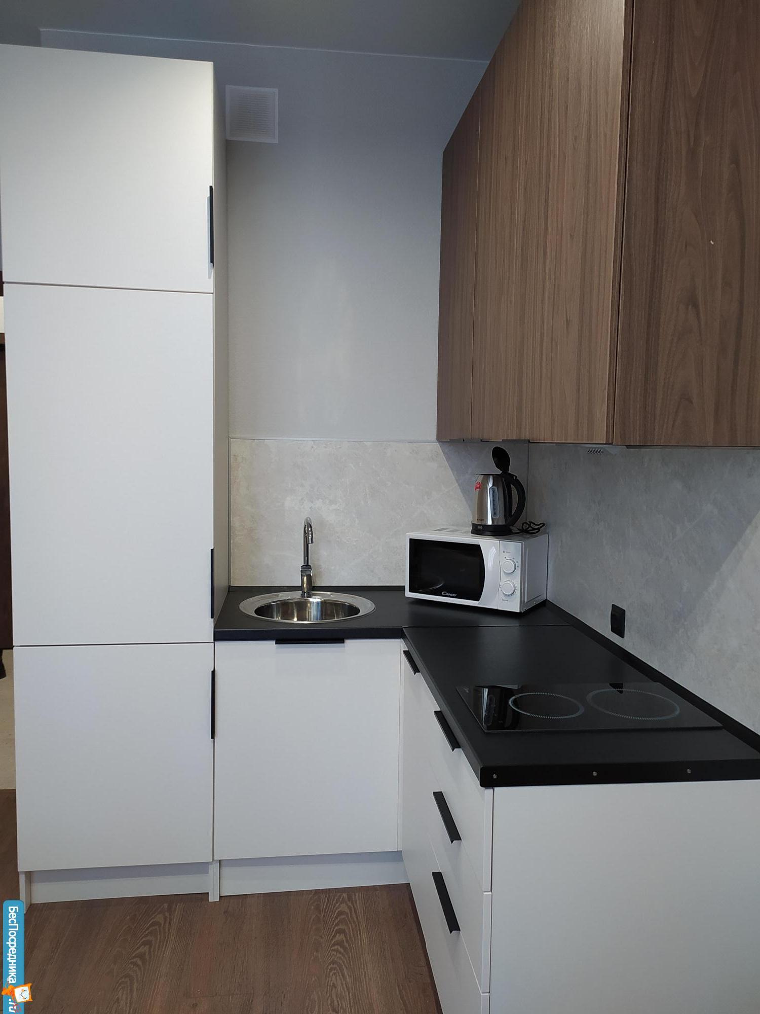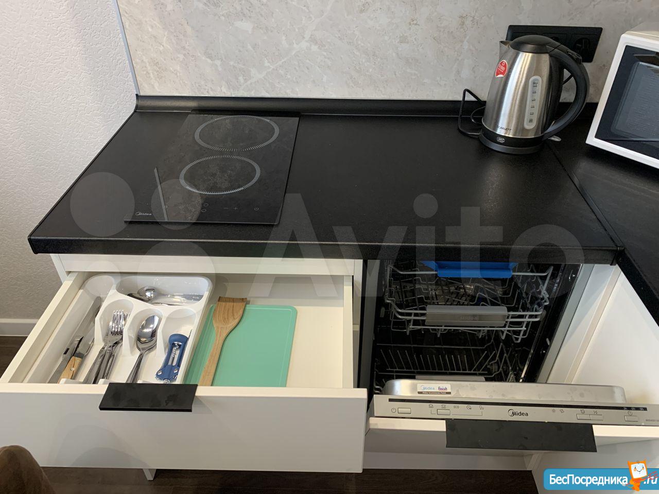 Квартира небольшая но уютная, есть вся мебель и техника (большой холодильник, смарт телевизор, варочная поверхность, вытяжка, чайник, стиральная машинка), посуда. Всё новое, будете первым жильцом.
