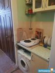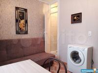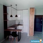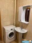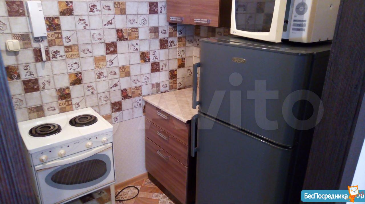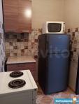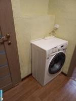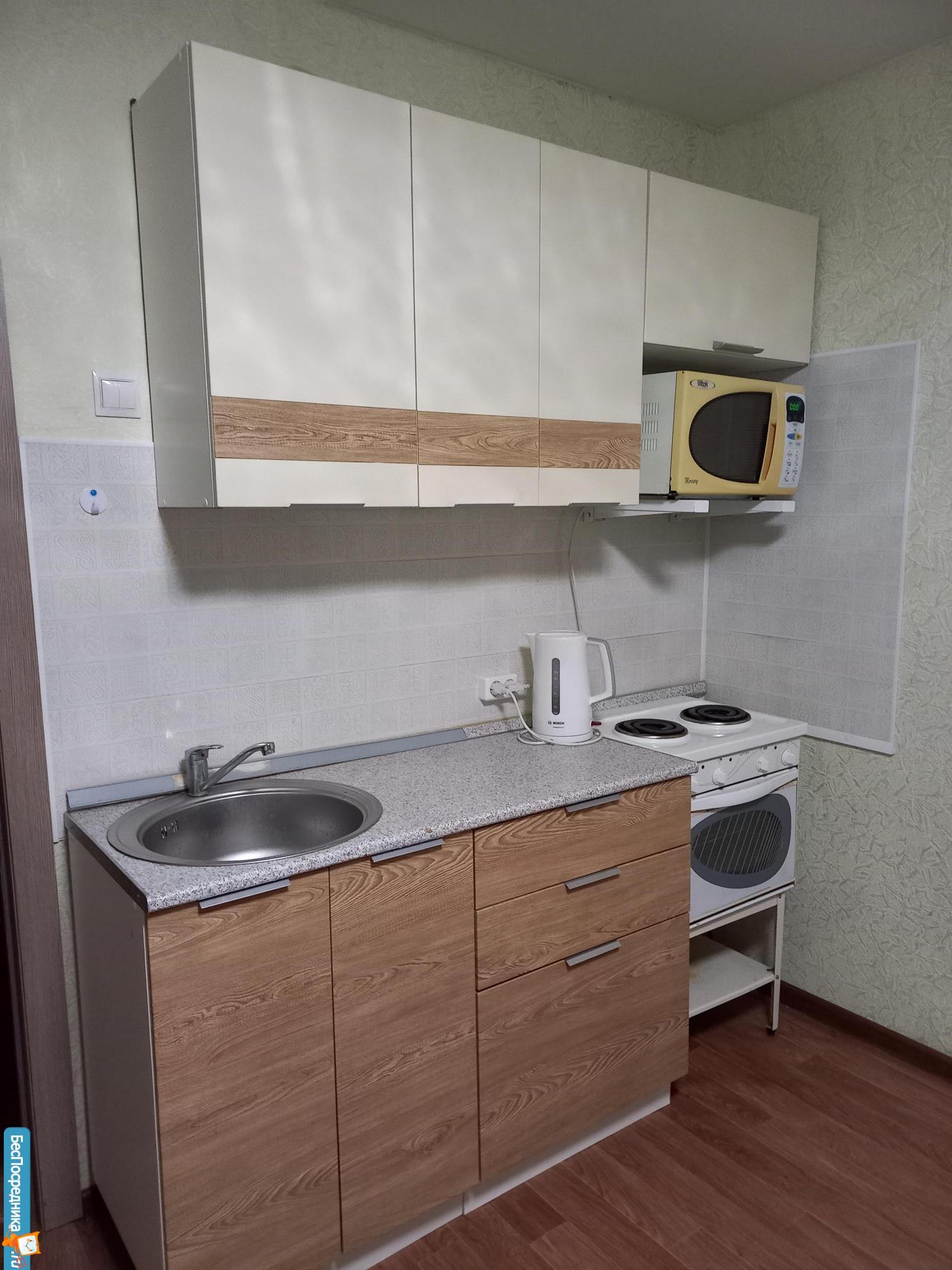 В квартире есть все необходимое для жизни. Шкаф, спальное место (диван), душ, кухонный гарнитур, стол и стулья. Из техники: стиральная машина, микроволновка, чайник, плита и духовой шкаф, холодильник.