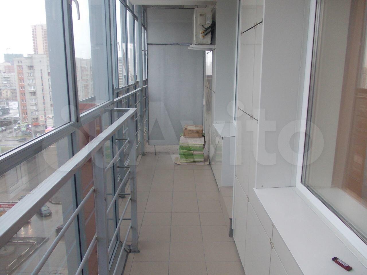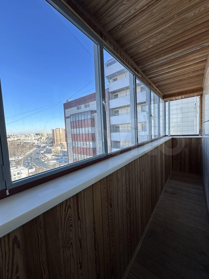 Балкон с панорамными окнами, есть освещение и функция теплых полов.